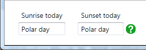 If the sun is above or below the horizon 24 hours a day at your location (this happens very far north or south at certain times of year), ‘Polar day’ or ‘Polar night’ is shown in these fields.