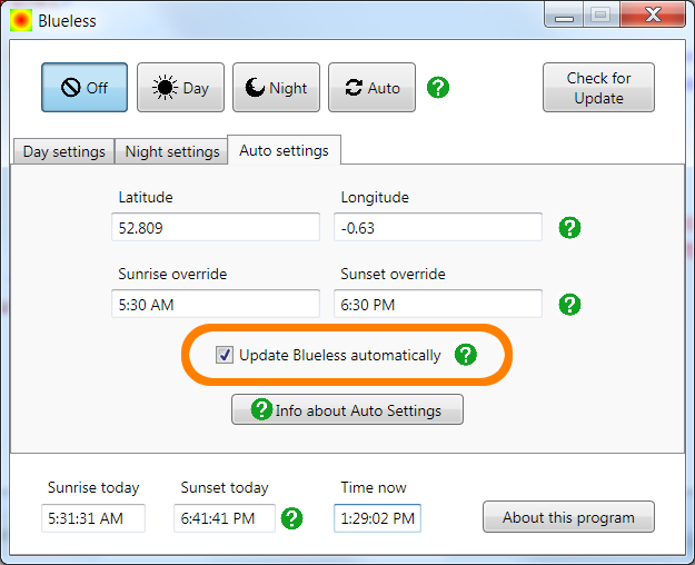 When this box is checked, Blueless updates itself to new versions automatically.